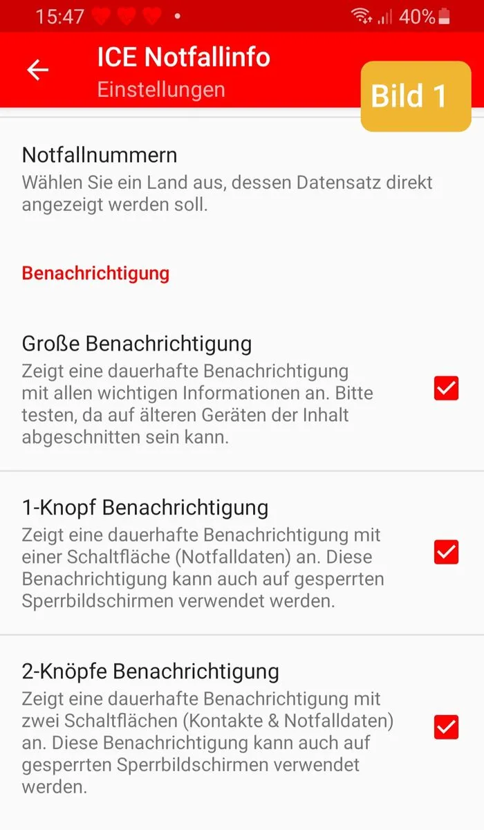 Was ich bekomme ist entweder gar keine Anzeige. Oder zwei Anzeigen (auch für die "Notarztinfos"). Mal auch genau die, die ich gern hätte, aber die ist dann beim nächsten Sperrbildschirm einschalten auch mal wieder nicht da. In jedem Fall habe ich immer 2 Herzen in meiner Statusleiste - und die brauche ich da auch nicht.