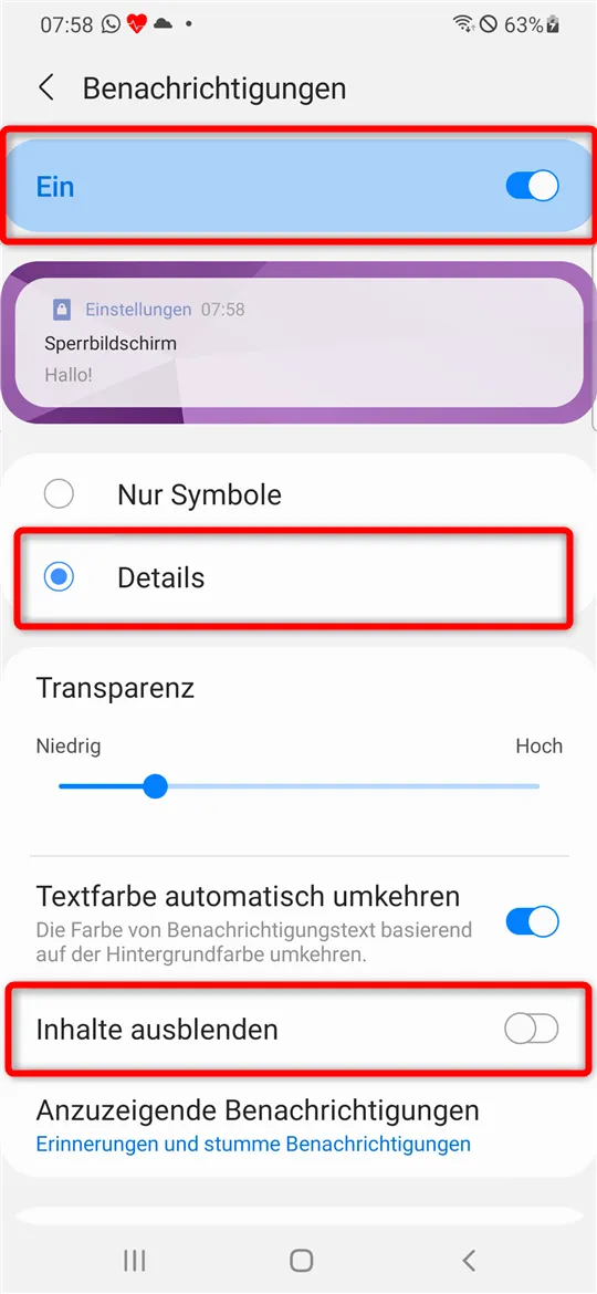 .Schauen Sie ggf. auch mal bei Google nach: BEZEICHNUNG IHRES SMARTPHONES + BENACHRICHTIGUNGEN AUF DEM SPERRBILDSCHIRM VOLLSTÄNDIG ANZEIGEN.
